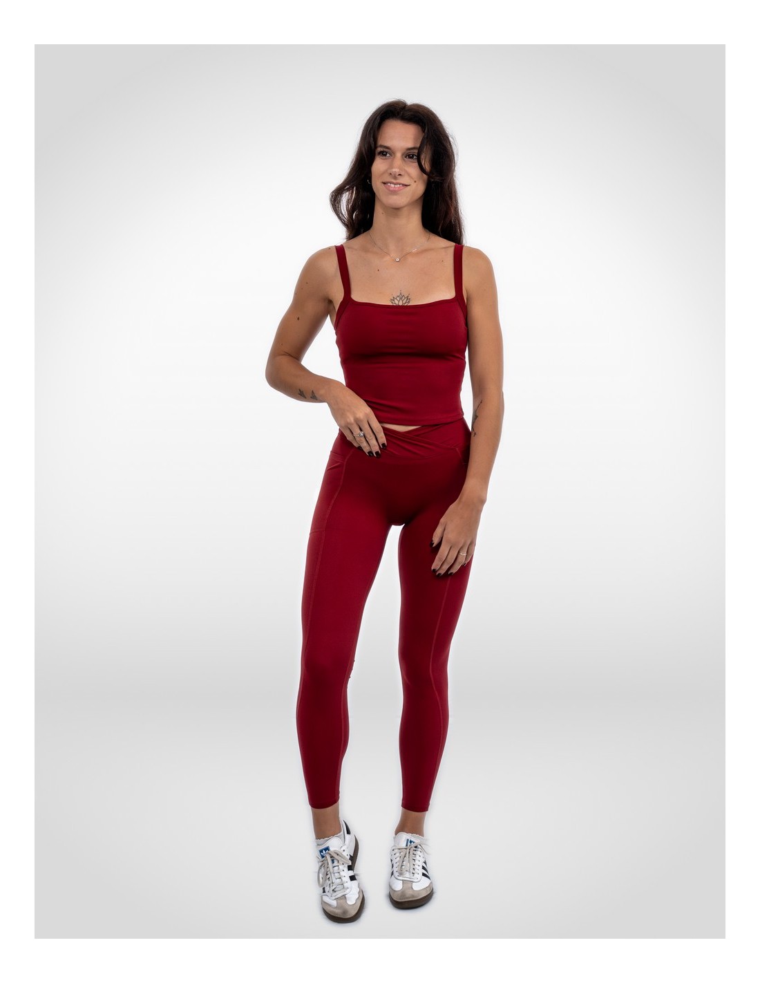 Le Sculpt Wine Top a été conçu pour sublimer la silhouette tout en offrant un maintien confortable et fluide. Sa matière premium, composée de nylon ultra-doux et de spandex extensible, épouse les formes sans les comprimer.